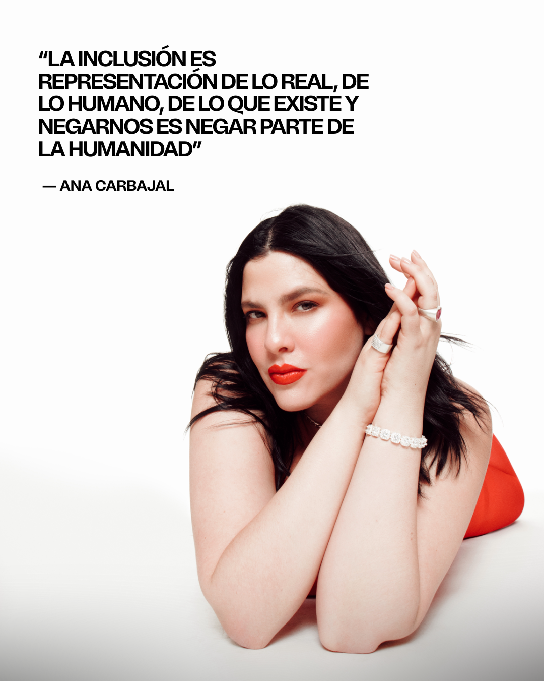 “La inclusión es representación de lo real, de lo humano, de lo que existe y negarnos es negar parte de la humanidad, es negar el cuerpo de nuestra madre marcado al darnos la vida, es negar el paso del tiempo y sus heridas en nuestra piel, es negar la vida misma, porque pareciera que vivir y tener marcas de ello no es bien recibido, la inclusión es respeto, es darle lugar a lo que ya existe, no necesitamos que “se cree” algo nuevo, necesitamos que volteen alrededor y puedan reconocer lo que ya existe, un mundo y una humanidad llena de diversidad y riqueza por naturaleza, y aunque por años creímos lo contrario es ahí en nuestras diferencias, donde radica la belleza más única e incomparable.”